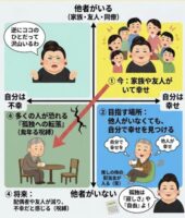 ④(左下の緑色)への転落: 配偶者に先立たれ、友人も減り、仕事の繋がりも消える。「他人がいない」という状況になった瞬間、自分を「不幸」だと定義してしまう。